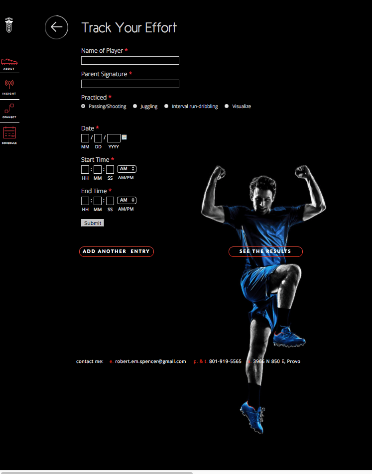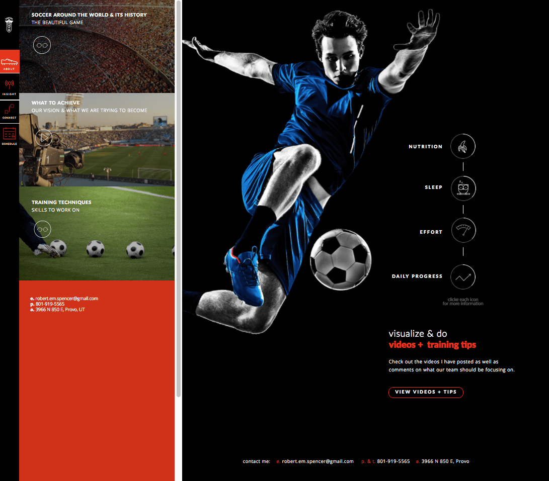 The website was designed to help soccer players track their fitness efforts and educate themselves on soccer