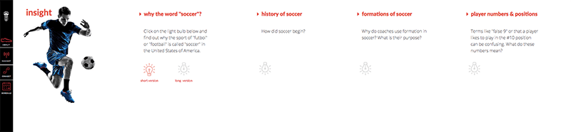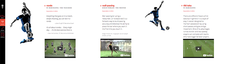 A slide out panel gave access to training materials and insights into soccer history